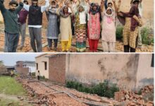 हल्की आंधी बारिश मे ढह गयी पंचायत घर की बाउंड्री वाॅल, ठेकेदार पर कार्यों में अनियमितता बरतने का लगाया आरोप।