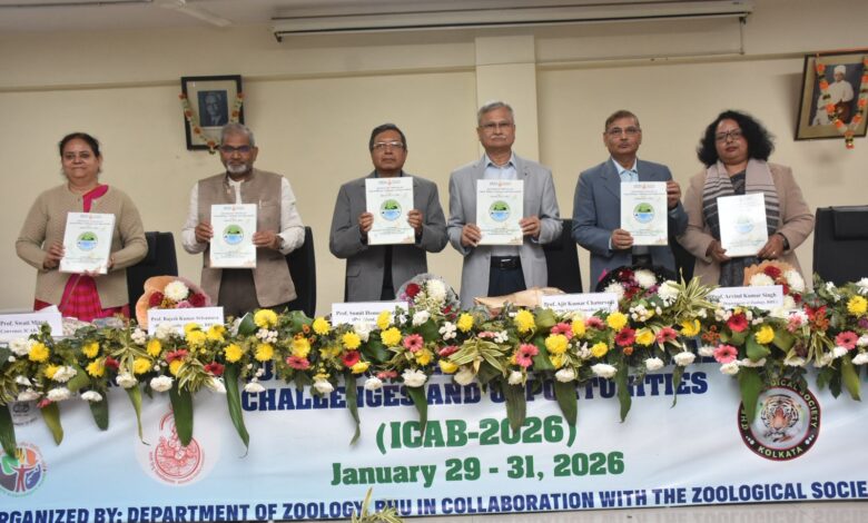 वाराणसी :- काशी हिंदू विश्वविद्यालय के जंतु विज्ञान विभाग द्वारा कोलकाता की जूलॉजिकल सोसाइटी के सहयोग से आयोजित अंतरराष्ट्रीय सम्मेलन ऑन एनिमल बायोलॉजी चैलेंजेस एंड ऑपर्चुनिटीज (ICAB-2026) का उद्घाटन समारोह 29 जनवरी गुरुवार को प्रो.एस.एस. जोशी हॉल केमिस्ट्री विभाग में संपन्न हुआ | इस तीन दिवसीय अंतरराष्ट्रीय सम्मेलन (29-31जनवरी 2026) में देश-विदेश के प्रतिष्ठित वैज्ञानिक,शोधकर्ता और छात्र शामिल हो रहे हैं | कार्यक्रम की अध्यक्षता प्रोफेसर अजीत कुमार चतुर्वेदी कुलपति काशी हिंदू विश्वविद्यालय ने की | सम्मेलन संयोजक प्रोफेसर स्वाति मित्तल ने स्वागत भाषण देते हुए कहा कि सम्मेलन में भारत के विभिन्न राज्यों से बड़ी संख्या में प्रतिभागी आए हैं उन्होंने सभी अतिथियों, वक्ताओं और शोधकर्ताओं का हार्दिक स्वागत करते हुए कहा कि यह विविधता ही हमारे सम्मेलन को और समृद्ध बना रही है | जूलॉजिकल सोसाइटी ऑफ इंडिया कोलकाता के प्रोफेसर सुमित होम चौधरी ने अपने संबोधन में वैज्ञानिकों के बीच इनरैक्शन पर जोर दिया | उन्होंने कहा कि यह अंतर्क्रिया ही विज्ञान को नई दिशा प्रदान करती है और नए विचारों एवं सहयोग की नींव रखती है |