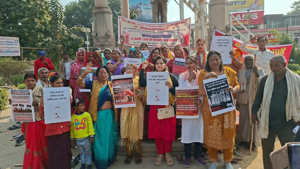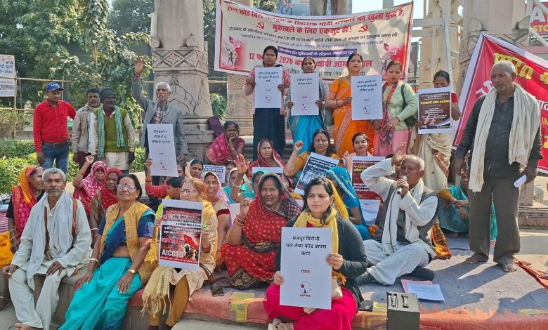 ऑल इंडिया सेंट्रल काउंसिल आफ ट्रेड यूनियन्स के नेतृत्व में वाराणसी मे ग्रामीण मजदूर सभा,आशा वर्कर्स यूनियन और अखिल भारतीय किसान महासभा,ऐपवा ने हड़ताल के समर्थन में दिया धरना ||