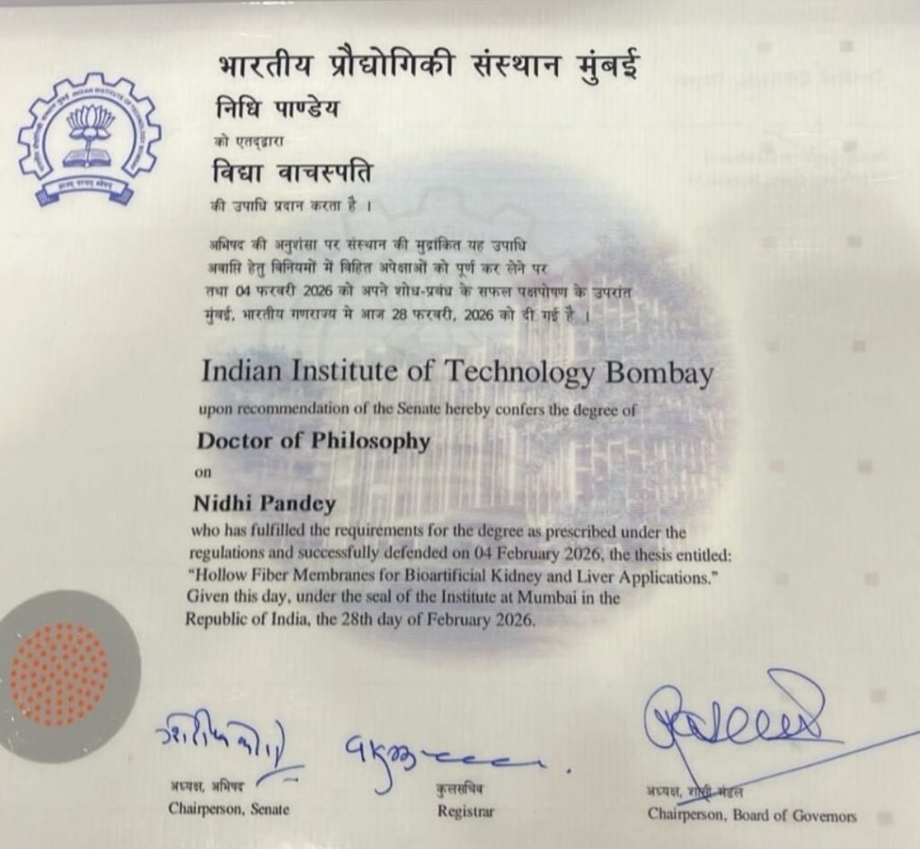 शोहरतगढ़/सिद्धार्थनगर।जनपद सिद्धार्थनगर के लिए अत्यन्त हर्ष और गर्व का विषय है कि उत्तर प्रदेशीय प्राथमिक शिक्षक संघ, जनपद सिद्धार्थनगर के प्रथम अध्यक्ष तथा विकास खण्ड खुनियांव के ग्राम पंचायत नागचौरी निवासी स्व0 ध्रुव नारायन पाण्डेय की नतिनी व केशरी नन्दन पाण्डेय की पुत्री कुमारी निधि पाण्डेय (नेहा) ने भारतीय प्रौद्योगिकी संस्थान मुम्बई से “होलो फाइबर मेम्ब्रेन फॉर बायोआर्टिफिशियल किडनी एण्ड लिवर एप्लीकेशन” विषय पर डॉक्टर ऑफ फिलॉसफी (पीएचडी) की उपाधि प्राप्त की है। डॉ0 निधि पाण्डेय का शोध कार्य बायोआर्टिफिशियल किडनी और लिवर के लिए होलो फाइबर मेम्ब्रेन के विकास पर आधारित है जो भविष्य में किडनी और लिवर रोगों के उपचार में महत्वपूर्ण भूमिका निभा सकता है। उनकी यह उपलब्धि न केवल उनके परिवार बल्कि पूरे जनपद सिद्धार्थनगर के लिए गौरव का क्षण है। क्षेत्रवासियों सहित जनपदवासियों का कहना है कि डॉ0 निधि पाण्डेय की सफलता युवा पीढ़ी के लिए प्रेरणास्रोत है और यह साबित करती है कि ग्रामीण परिवेश से निकलकर भी उच्च शिक्षा के क्षेत्र में राष्ट्रीय और अन्तर्राष्ट्रीय स्तर पर पहचान बनाई जा सकती है। इस महत्वपूर्ण उपलब्धि पर शोहरतगढ़ विधायक विनय वर्मा, उत्तर प्रदेशीय प्राथमिक शिक्षक संघ के वरिष्ठ उपाध्यक्ष व जिला अध्यक्ष सिद्धार्थनगर राधारमण त्रिपाठी, पूर्व जिला कार्यवाह राममिलन त्रिपाठी, जितेन्द्र पाण्डेय, हिमांशु त्रिपाठी, नपं अध्यक्ष प्रतिनिधि शोहरतगढ़ रवि अग्रवाल, लालजी यादव, कृपा शंकर त्रिपाठी, पवन ओझा, प्रधान संगठन जिलाध्यक्ष डॉ0 पवन मिश्रा, राजा योगेन्द्र प्रताप सिंह, मुस्तन शेरुल्लाह, डा0 शादाब अंसारी, सर्जन डॉ0 सरफराज अंसारी, सर्जन डॉ0 नसीम अहमद, डॉ0 सुशांत जायसवाल एवं डॉ0 इन्द्रेश तिवारी, रोहिणी त्रिपाठी, सौरभ पाण्डेय, साधना त्रिपाठी, शिवा त्रिपाठी, कविता तिवारी सहित अनेक गणमान्य लोगों ने डॉ0 निधि पाण्डेय को उज्ज्वल भविष्य की शुभकामनाएं दी हैं। सभी ने ईश्वर से प्रार्थना की है कि वह निरन्तर प्रगति के पथ पर अग्रसर होकर अपने गांव, जिला, प्रदेश और देश का नाम रोशन करती रहें।