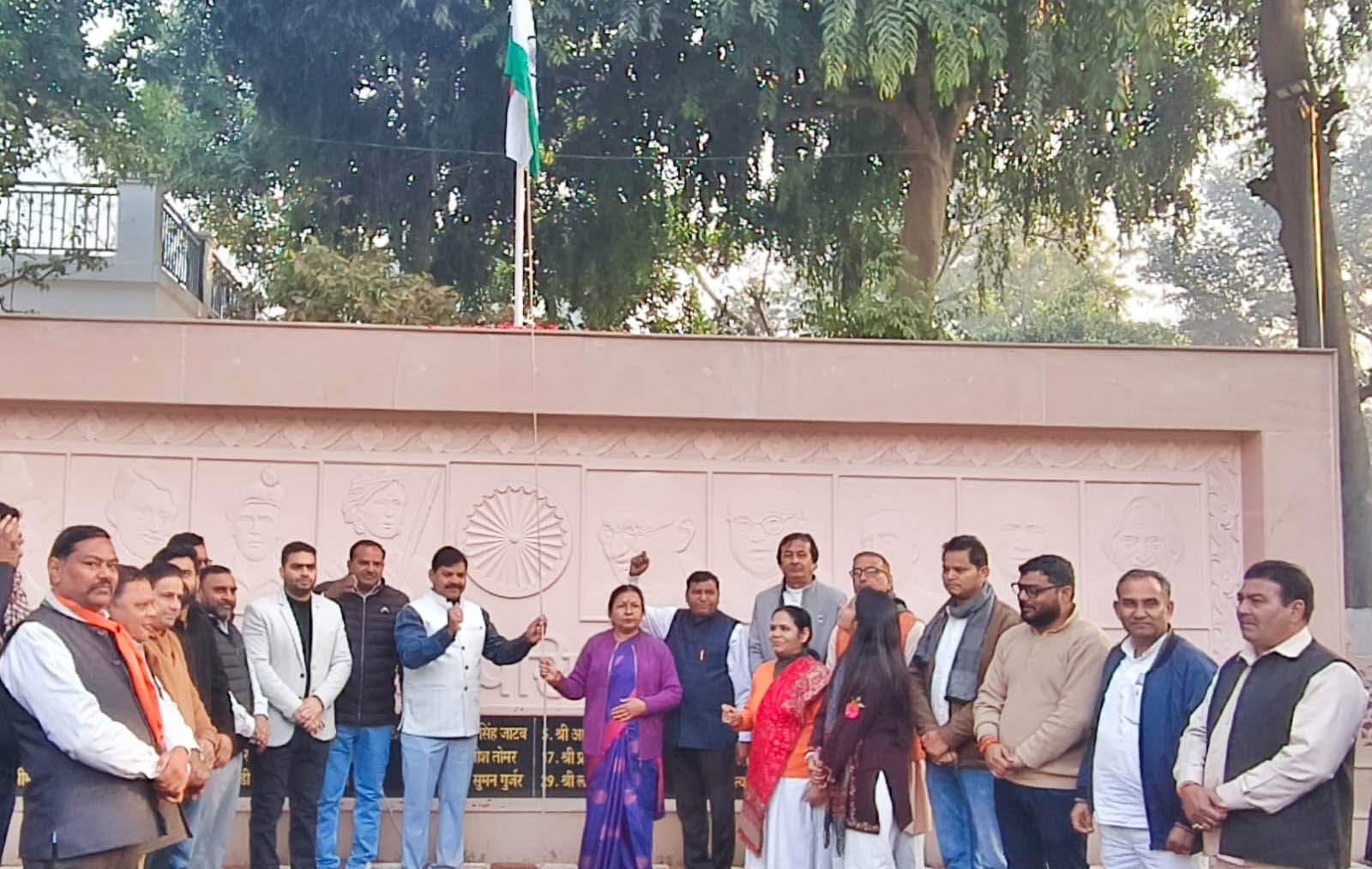 मोदीनगर,( अनिल वशिष्ठ) । 77 वें गणतंत्र दिवस के अवसर पर नगर पालिका परिषद, मोदीनगर के प्रांगण में देश के सम्मान में ध्वजारोहण माननीय विधायक डॉ. मंजू शिवाच एवं नगर पालिका परिषद के चेयरमैन विनोद वैशाली द्वारा किया गया।ध्वजारोहण के उपरांत राष्ट्रपिता महात्मा गांधी जी की प्रतिमा पर माल्यार्पण किया गया, तत्पश्चात संविधान निर्माता डॉ. भीमराव आंबेडकर जी की प्रतिमा पर भी श्रद्धापूर्वक माल्यार्पण कर उन्हें नमन किया गया।