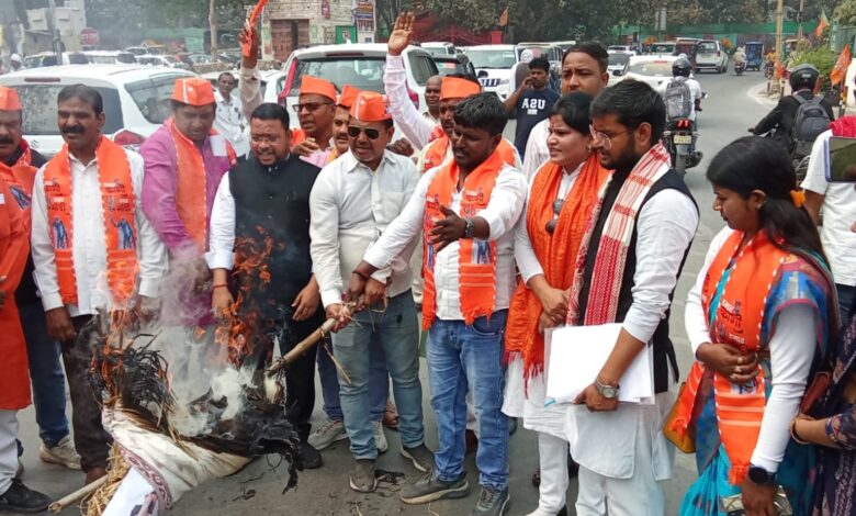 संवैधानिक पद के अपमान पर आक्रोश, वाराणसी में ममता बनर्जी का फूंका पुतला ||