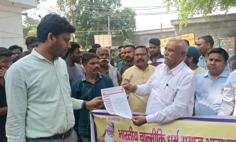 वेतन वृद्धि की मांग को लेकर भारतीय वाल्मीकि धर्म समाज का प्रदर्शन