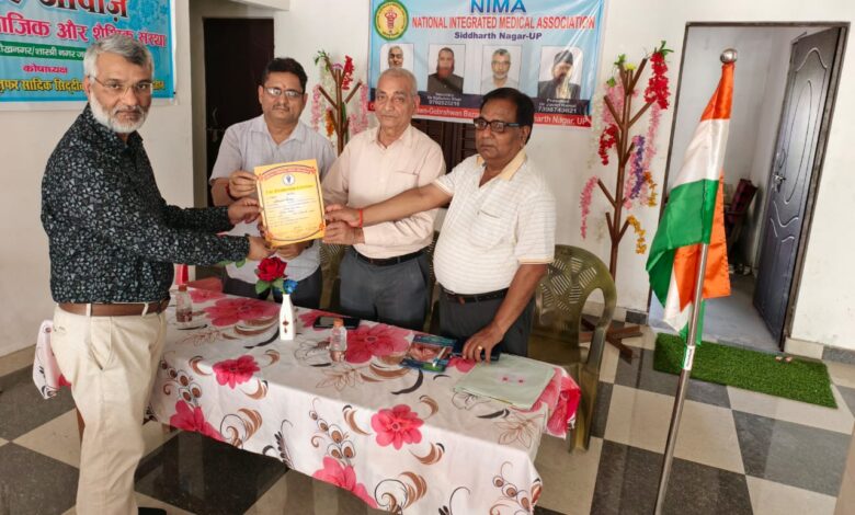सिद्धार्थनगर। नेशनल इंटीग्रेटेड मेडिकल एसोसिएशन ( नीमा )स्थापना दिवस पर विभिन्न शहरों में मनाए जाने वाले स्थापना दिवस कार्यक्रमों की कड़ी में जनपद में भी एक कार्यक्रम का आयोजन किया गया, जिसमें नीमा के सदस्यों ने प्रतिभाग किया। इस अवसर पर नीमा के संरक्षक डॉ टी पांडेय ने नीमा(नेशनल इंटीग्रेटेड मेडिकल एसोसिएशन) बारे में बताते हुए उस पर विस्तार से चर्चा की और उसके महत्व को वहां मौजूद डॉक्टरों को बताया। उन्होंने अधिक से अधिक संख्या में नीमा से जुड़ने का आह्वान भी किया उन्होंने बताया कि नीम लगभग 78 वर्ष पुरानी संस्था है जो डॉक्टरों के हितों के लिए सदैव प्रयासरत रहती है।इसी सिलसिले में कोषाध्यक्ष डॉ अहमद हुसैन ने कहा कि नीमा एक राष्ट्रीय संस्था है जिसकी शाखाएं सिर्फ प्रदेश ही नहीं बल्कि प्रदेश के बाहर अन्य दूसरे प्रदेशों में भी कार्यरत हैं।नीमा जो नेशनल इंटीग्रेटेड मेडिकल एसोसिएशन के नाम से जानी जाती है चिकित्सकों की मदद के लिए सदैव तत्पर रहती है और किसी भी तरह की दिक्कत या परेशानी आने पर नीमा का प्रत्येक सदस्य और पदाधिकारी उसकी मदद के लिए तैयार रहता है। इस अवसर पर संरक्षक डॉ केपी पांडे द्वारा नए सदस्यों को प्रमाण पत्र भी दिए गए। मुख्य रूप से डॉ अहमद हुसैन, डॉ नवीन श्रीवास्तव,डॉ मनोज गौतम,डा रितु गौतम और डा सौरभ गुप्ता आदि के नाम उल्लेखनीय हैं।इस अवसर पर नीमा के अध्यक्ष डॉ जावेद कमाल के साथ सचिव डॉ रफीउद्दीन खान, उपाध्यक्ष डॉ कमलेश मिश्रा, डॉ मधुसूदन पांडे, डॉ अरुण द्विवेदी आदि मौजूद रहे।