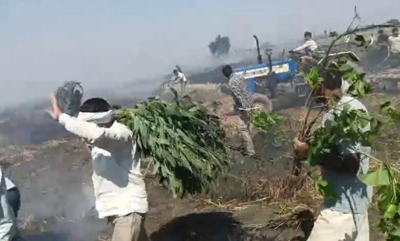 बिजली के तारों से निकली चिंगारी से तैयार फसल जलकर हुई राख