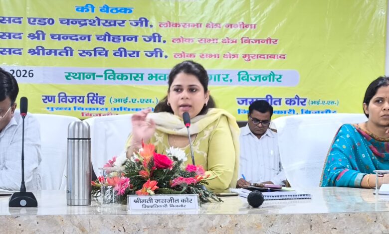 जिलाधिकारी जसजीत कौर ने बताया कि 09 अप्रैल,2026 को प्रदेश के माननीय मुख्यमंत्री योगी आदित्यनाथ जी के प्रस्तावित भ्रमण कार्यक्रम के अंतर्गत स्थानीय वर्धमान डिग्री कॉलेज के मैदान में आम जनसभा का आयोजन किया जाएगा इस अवसर पर माननीय मुख्यमंत्री द्वारा जिले में 05 करोड़ से अधिक लागत की परियोजनाओं का लोकार्पण एवं शिलान्यास किया जाएगा तथा विभिन्न सरकारी योजनाओं के लाभार्थियों को प्रमाण पत्र भी उपलब्ध कराए जाएंगे। उन्होंने उक्त कार्यक्रम के संबंध में सभी संबंधित अधिकारियों को विभागीय परियोजनाओं एवं कार्यक्रमों का अद्यतन पूर्ण विवरण तथा जिन परियोजनाओं का शिलान्यास एवं लोकार्पण किया जाना प्रस्तावित है, उनकी पूरी जानकारी की सूचना जिला अर्थ एवं संख्या अधिकारी को अनिवार्य रूप से उपलब्ध करा दें। उन्होंने यह भी निर्देश दिए कि जिला बिजनौर में शासकीय योजनाओं कार्यक्रम के अंतर्गत जो भी उपलब्धियां प्राप्त हुई हैं, उसकी सूचना भी जिला अर्थ एवं संख्या कार्यालय को उपलब्ध कराया जाना सुनिश्चित करें।
