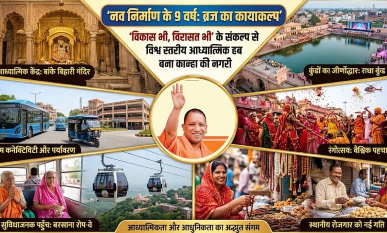 मथुरा। उत्तर प्रदेश में मुख्यमंत्री योगी आदित्यनाथ के नेतृत्व वाली सरकार के सफल 9 वर्षों के ‘नव निर्माण’ ने ब्रज भूमि की तस्वीर पूरी तरह से बदल दी है। दशकों तक बुनियादी सुविधाओं की उपेक्षा झेलने वाली कान्हा की नगरी मथुरा-वृंदावन आज ‘विकास भी, विरासत भी’ के संकल्प का सबसे जीवंत उदाहरण बन चुकी है। सरकार ने यहाँ केवल कंक्रीट का ढांचा नहीं खड़ा किया, बल्कि द्वापर युग की उस आध्यात्मिक ऊर्जा और सांस्कृतिक भव्यता को आधुनिक सुविधाओं के साथ पुनर्जीवित किया है, जो आज पूरी दुनिया को अपनी ओर आकर्षित कर रही है।