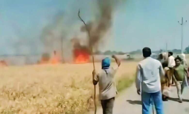 शॉर्ट सर्किट से गेहूं की खड़ी फसल जलकर राख, ग्रामीणों ने पाया आग पर काबू