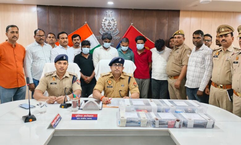 पुलिस अधीक्षक संदीप कुमार मीना के निर्देशन में जनपद संतकबीरनगर मे अपराध एवं अपराधियो के विरुद्ध चलाये जा रहे क्रैक साइबर क्राइम अभियान के तहत साइबर क्राइम थाना, एसओजी व थाना धनघटा के साइबर क्राइम थाना उ0नि0 ललित कान्त यादव, उ0नि0 रमेश, उ0नि0 जयप्रकाश यादव, हे0का0 हिन्दे आजाद, का0 रामप्रवेश, का0 शिवम यादव, का0 धीरेन्द्र कुमार, एसओजी प्रभारी निरीक्षक अजय कुमार सिंह, हे0का0 विवेक कुमार राय, हे0का0 अनुप राय, का0 अभिषेक सिंह, का0 बीर बहादुर यादव, अपराध निरीक्षक थाना धनघटा रामेश्वर यादव की संयुक्त टीम ने बुद्धवार को 05 अभियुक्तों विजय यादव पुत्र भालचन्द यादव निवासी जगदीशपुर थाना धनघटा, नीतेश कुमार पुत्र सभाजीत निवासी त्रिलोकपुर थाना बेलघाट जनपद गोरखपुर, शक्ति पुत्र शिवकरन निवासी कुसफरा थाना धनघटा, विकाश पाण्डेय पुत्र सभामणि पाण्डेय निवासी लोहरैया थाना धनघटा, आर्यन पाल पुत्र संजय पाल निवासी भरवल परवतवा थाना धनघटा को गिरफ्तार किया। गिरफ्तारी व बरामदगी के आधार पर मु0अ0सं0 03/2026 धारा 318(4),336(3),338,340(2),3(5) बीएनएस व धारा 66 (c), 66(d) आई0टी0 एक्ट व धारा 3/25 आर्म्स एक्ट पंजीकृत किया गया।