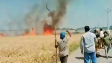 शॉर्ट सर्किट से गेहूं की खड़ी फसल जलकर राख, ग्रामीणों ने पाया आग पर काबू