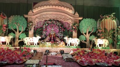 श्री गंगा महारानी का भव्य फूल बंगला सजाया, हुई भजन संध्या