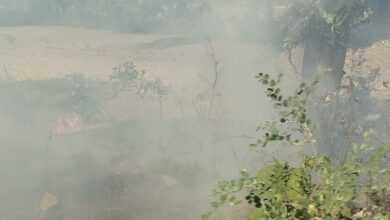 वन विभाग की जमीन पर लगी आग, कई पेड़ झुलसे